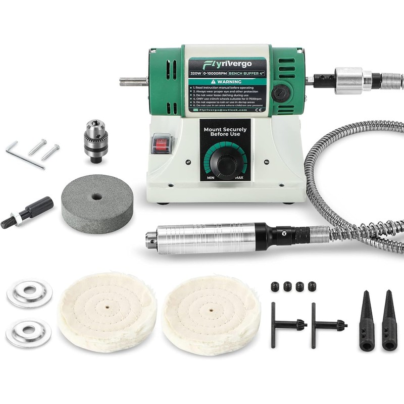 Flyrivergo Bench Buffer Polisher with Accessories Adjustable Variable Speed Multi-Function Bench Lathe Grinder Polishing Machine Tool Kit for Jewelry, Wood, Silver, Amber, Metal, Jade DIY