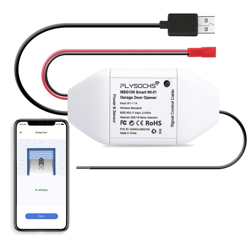 Flysocks Smart Garage Door Opener, WiFi Garage Door Switch, Compatible with Alexa, Google Assistant, No Hub Required, App Control