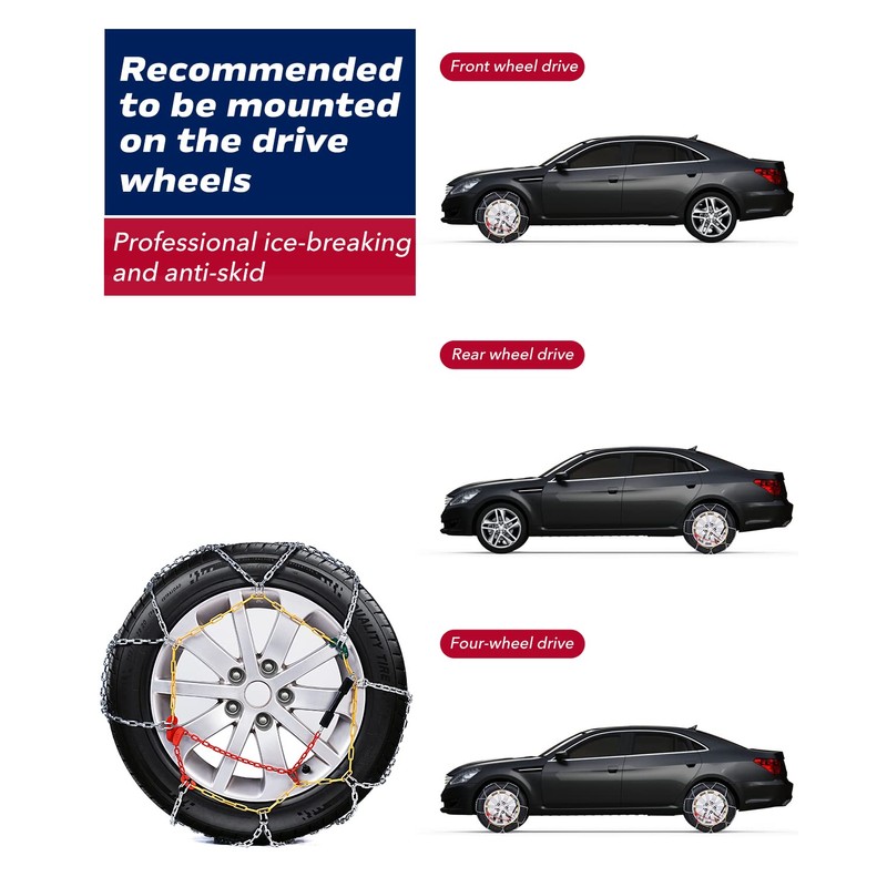 - ★High-quality materials: The tire chains are made of high quality and durable steel that will not damage the tires, while reducing noise, wear and tear and ensuring durability.