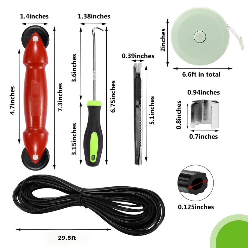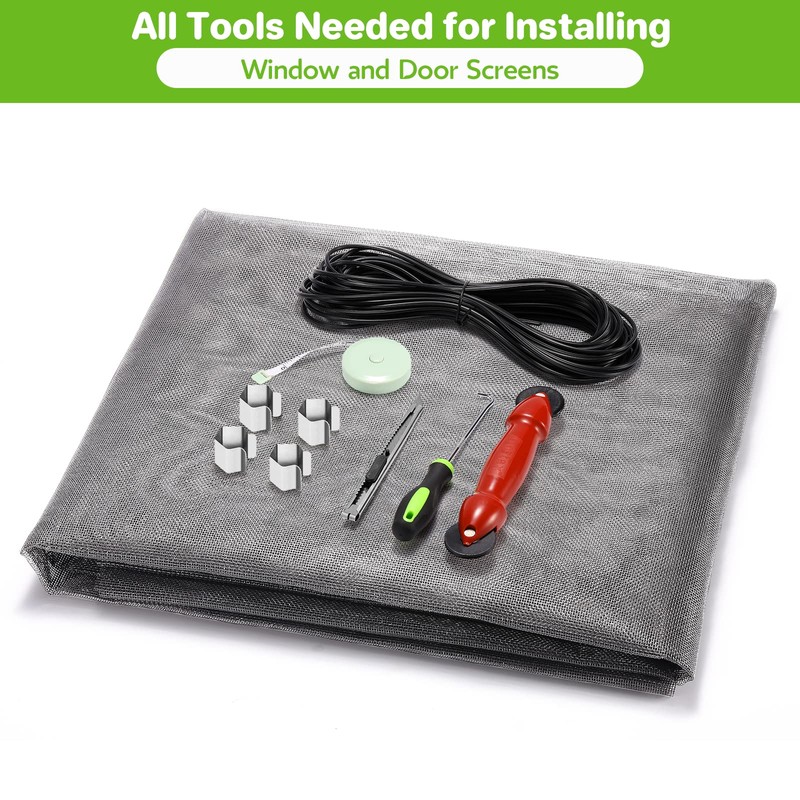 - DIY Window Screen Tool Sets: With all the tool you need, help you to replace the old screen quickly, the sets includes: Screen Roller Tool , 4Pcs Window Screen Installer Clips, Spline Removal Hook, 29.5ft Screen Retainer Spline, Screen Cutter and Ruler,