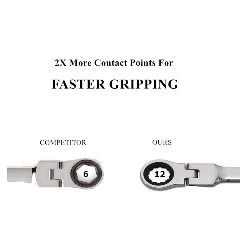 - ▶ 【PRECISION DESIGN】-180° Flex-Head performs precise repair work in any awkward places.72-tooth ratchet gears need only a 5° working swing arc suitable for any narrow space.High torque to tighten or loosen any bolts without rounding.