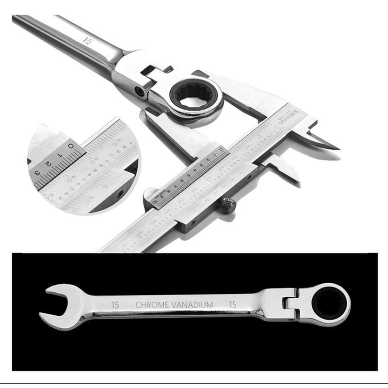 通用 FLZOSPER 15mm Metric Flex-Head Gear Wrench,Box End Head 72-Tooth Ratcheting Combination Wrench Spanner