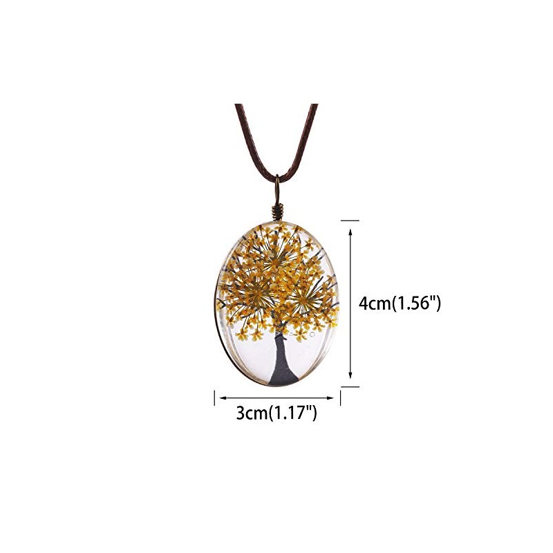 FM FM42 Yellow Life of Tree Queen Anne's Lace Dried Flowers Oval Pendant Necklace FN4075
