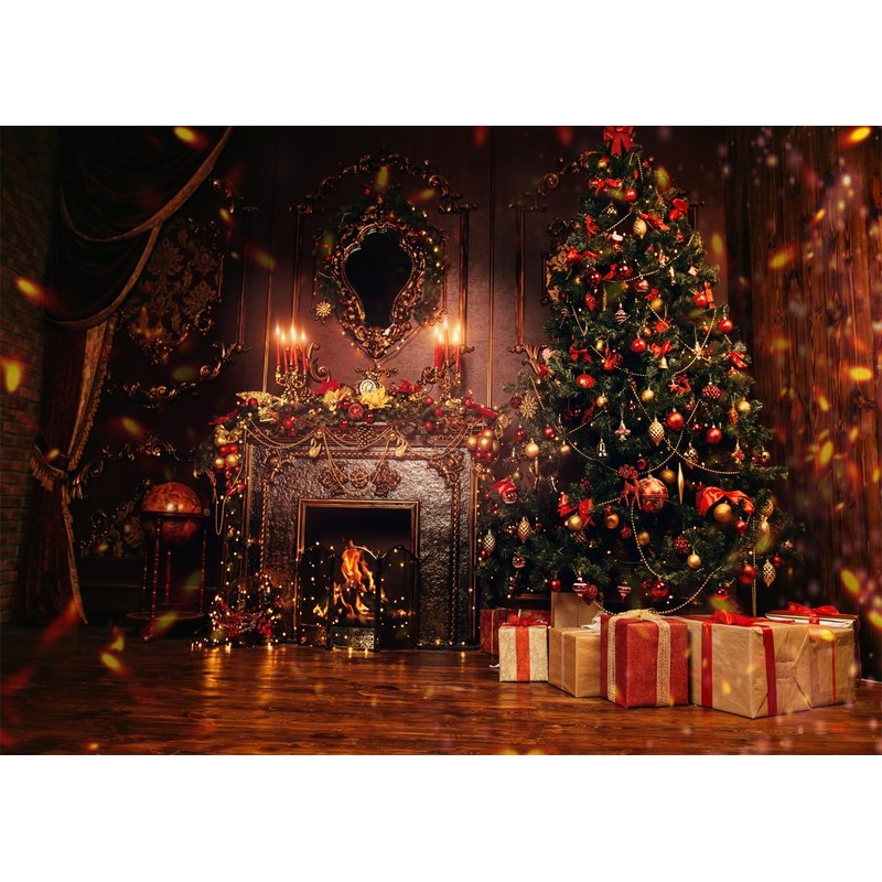 Fmarui 10x8ft Merry Christmas Backdrop, Christmas Tree & Fireplace Photograph...