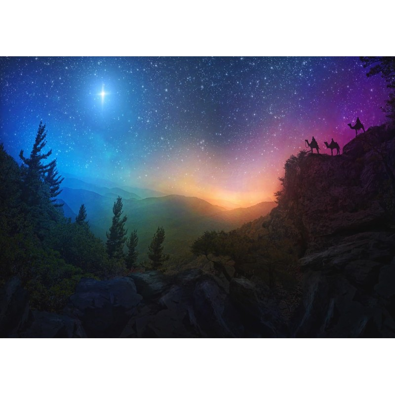 Fmarui 5x3ft Nativity of Jesus Backdrop Three Wise Men Follow The Christmas Star Photography Backgrounds Star of Bethlehem Starry Sky Night Jesus Birth Christian Church Decor Photo Props