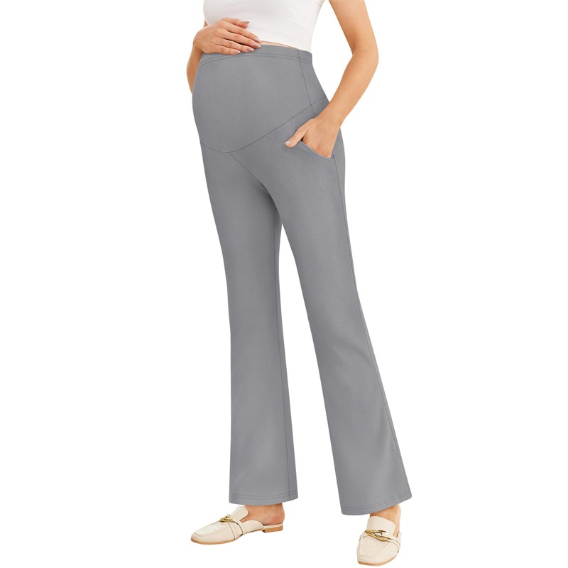 FMEYOA Women's Maternity Pants Casual Adjustable High Waist Flare Leggings Stretchy Pregnancy Trousers with Pockets Grey