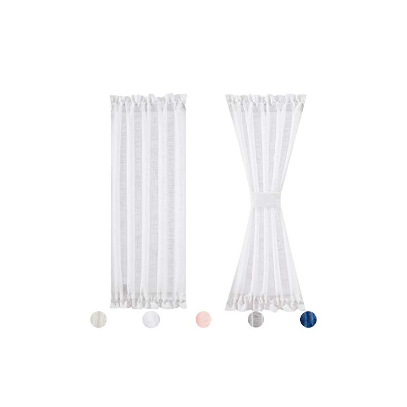 Fmfunctex White Sidelight Door Panels 40" Short Linen Texture Semi Sheer French Door Curtains for Entry Door Front Door Foyer Privacy Not See Through 24" w x 2 Pack