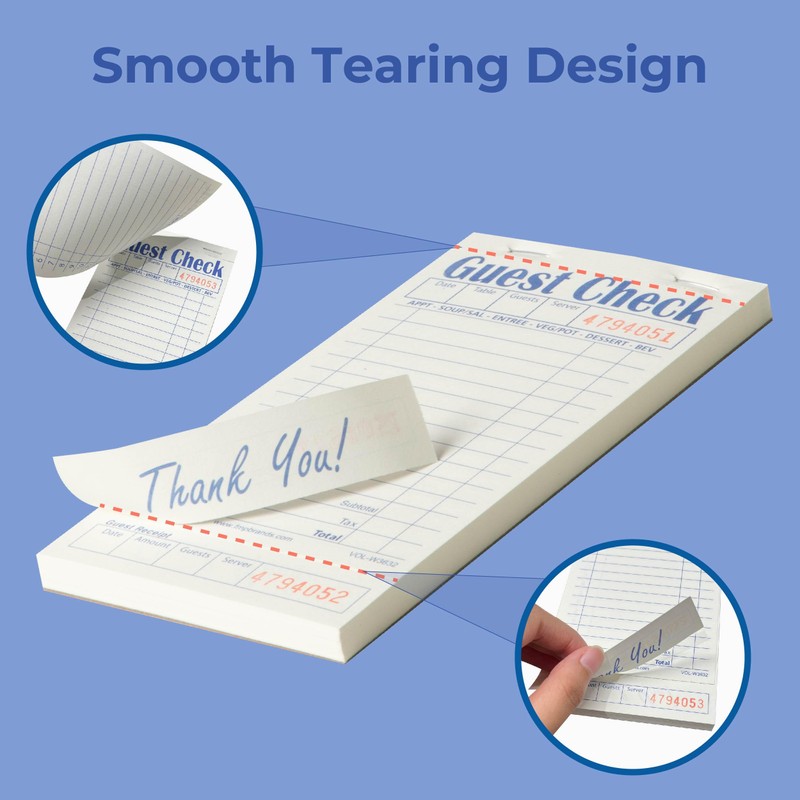 - Stay Organized and Efficient: Our 1 part guest check pads are perfect for restaurant server. It is an excellent waitress accessories for easy recording of each customer's needs.And it is easy to tear at top.