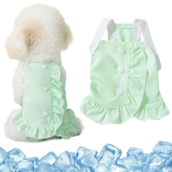 Fnaobai Dog Cooling Outfit Cute Puppy Summer Quick Dry Sleeveless Dress Shirt Breathable Pet Top Clothes Apparel with Ruffles for Small Medium Dog Cats (Green, X-Large(13.2-16.5lb))