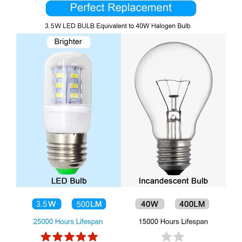 - Energy saving 3.5W mini fridge bulbs is equivalent to 40W incandescent bulb, bulb life up to 25,000 hours, keeping energy consumption low, 6000K daylight white freezing bulb, emits natural white light without glare, making life easier and more enjoyable.