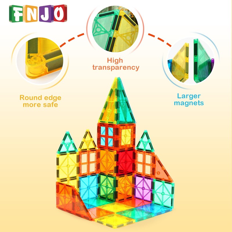 - Durable and Safe: Our magnetic tiles are made with high-quality ABS plastic and strong magnets that are built to last. They have no smell and meet all safety standards, ensuring safe playtime for kids.