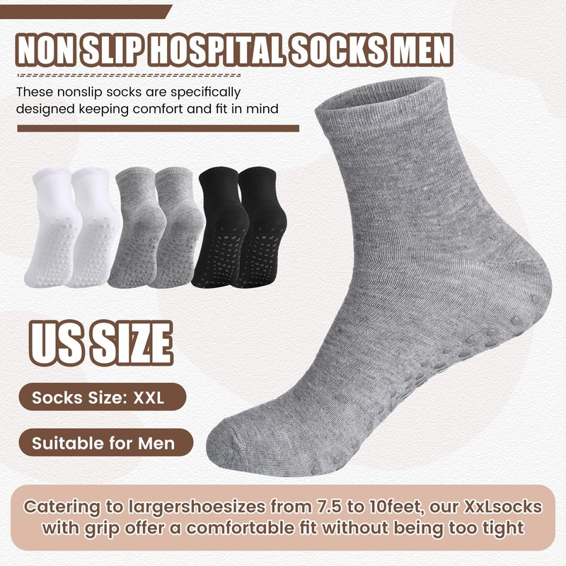 - Quantity and Size: with 12 pairs of non slip socks about black, white, and gray, you never have to worry about running out; Whether you want extras for your gym bag, office drawer, or simply as back-up, these XXL size (11.81 x 5.12 inches) socks are nice for your needs