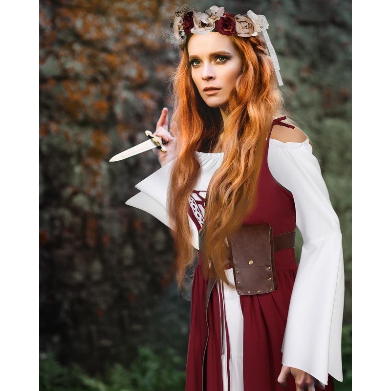 - Medieval Costume Women Set: you will receive 1 piece of renaissance fairy dress, 1 piece of waist bag, 1 piece of belt, 1 piece of floral crown, and 1 pairs of elf ears, nice in a combination, helpful for you to reduce the trouble of matching, more reliable and practical
