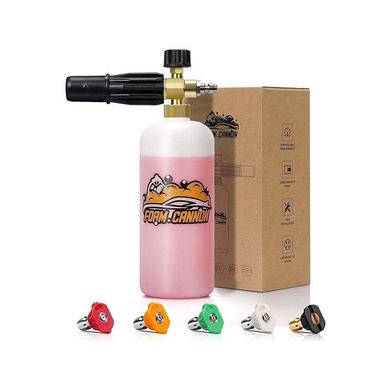 Foam Cannon Kit, 1L Bottle Snow Foam Cannon with 5 Pressure Washer Nozzle Tips, 1/4 Inch Quick Connector, Compatible with Gas Pressure Washers&Electric Pressure Washers