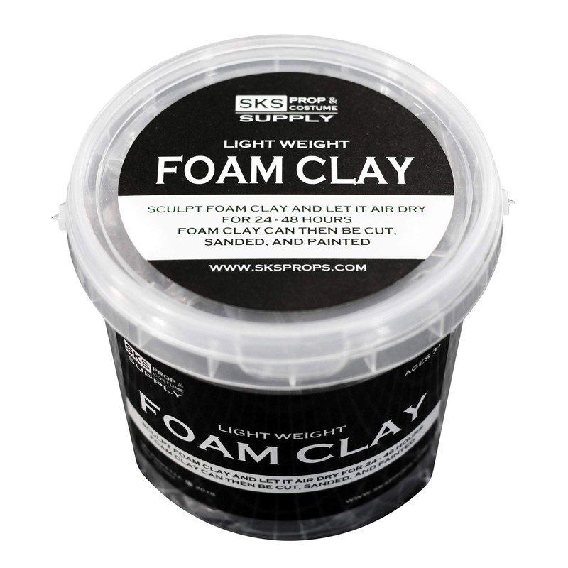 Add details to cosplay costumes, props, craft projects, and models with SKS Props Lightweight Foam Clay. Press into molds or sculpt by hand, then cut, sand, glue, prime, or paint. Works well with most glues and contact cement adhesives. 24�48 hour drying time. 300 g. - SKS Props Lightweight Foam Clay - 300 g Tub