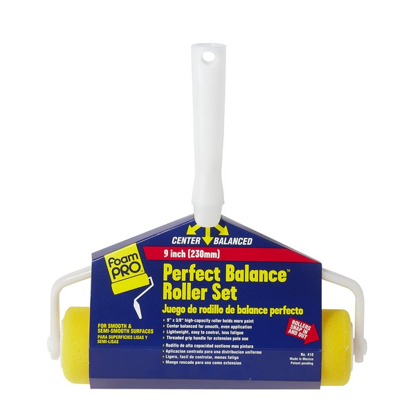 FoamPro, 9", foam perfect balance roller set, high capacity foam roller with center balanced frame provides quick, uniform coverage without roller tracks, reduces hand & arm fatigue.