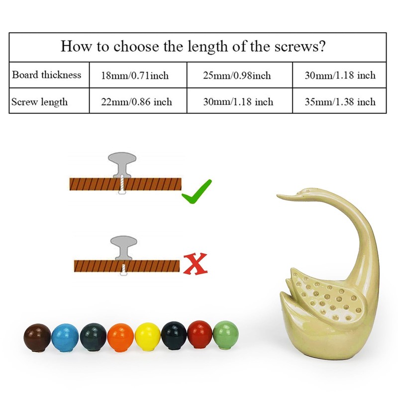- Easy Installation: Each set includes 3 different screw lengths (22mm/0.85inch、 25mm/0.98inch and 30mm/1.18inches), making these round drawer knobs suitable for cabinets and drawers of various thicknesses. Installation is quick and simple, even for beginners, so you can refresh your space with ease.Please note: Use a small Phillips screwdriver to tighten firmly during assembly