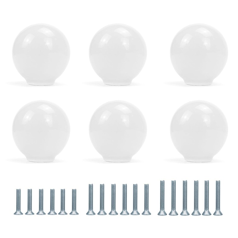 FOAN Cabinet Knobs 6 Pack, Ceramic Drawer Grip Handle, Suitable for Cupboard/Drawer/Dresser/Toilet/Kids Room, 1-1/4inch, Equipped with Multi Size Screws, White