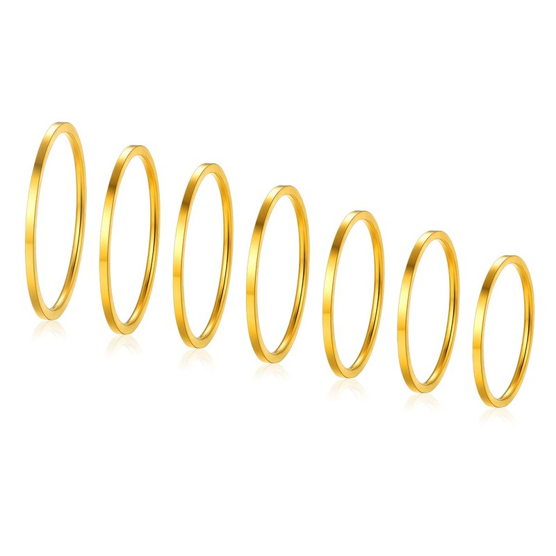 - ▶EXCELLENT VALUE FOR THE PRICE:This set of rings is pre packed with 7pcs of guage 1mm rings in golden tone. You can stack them or wear them seperately.Giving you versatility and options