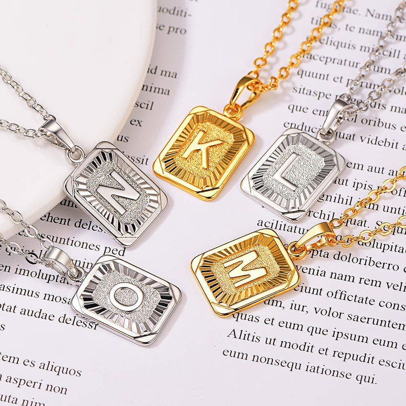 - ♦ Initial Letter Necklace- Square Pendant length:32.2mm,width:16.4mm. Chain length: 20inch(50cm), with 2inch extension. Weight:10g.