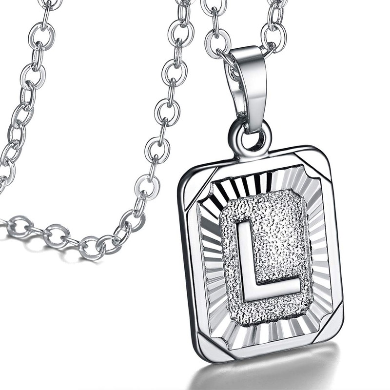 FOCALOOK Initial Necklaces for Women Rectangle Shaped Platinum Plated Silver Color Letter L Pendant Necklace