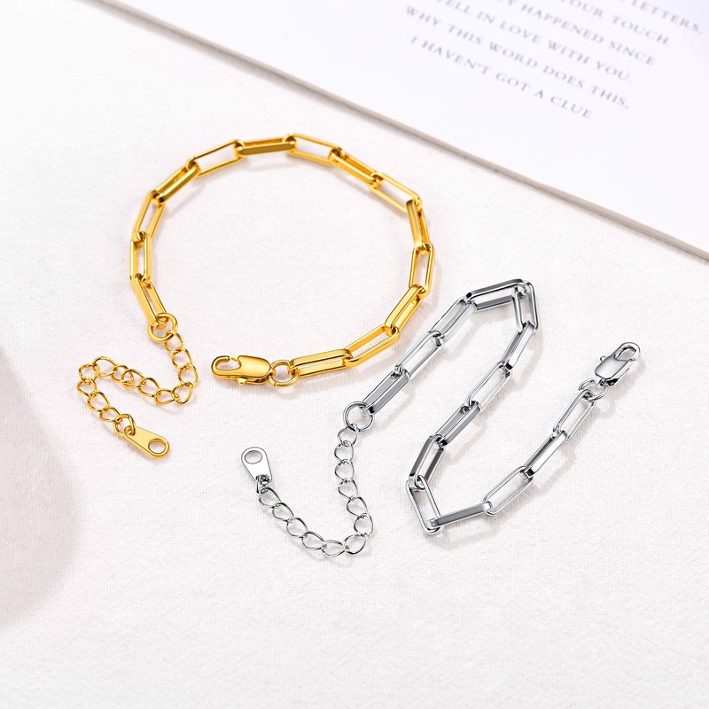 FOCALOOK Women's Men's Bracelet 4.2 mm Anchor Chain Bracelet 16 + 5 cm 18 Carat Gold-Plated / Platinum Plated Link Bracelet Chic Jewellery Accessory Gift for Girls Women, Metal
