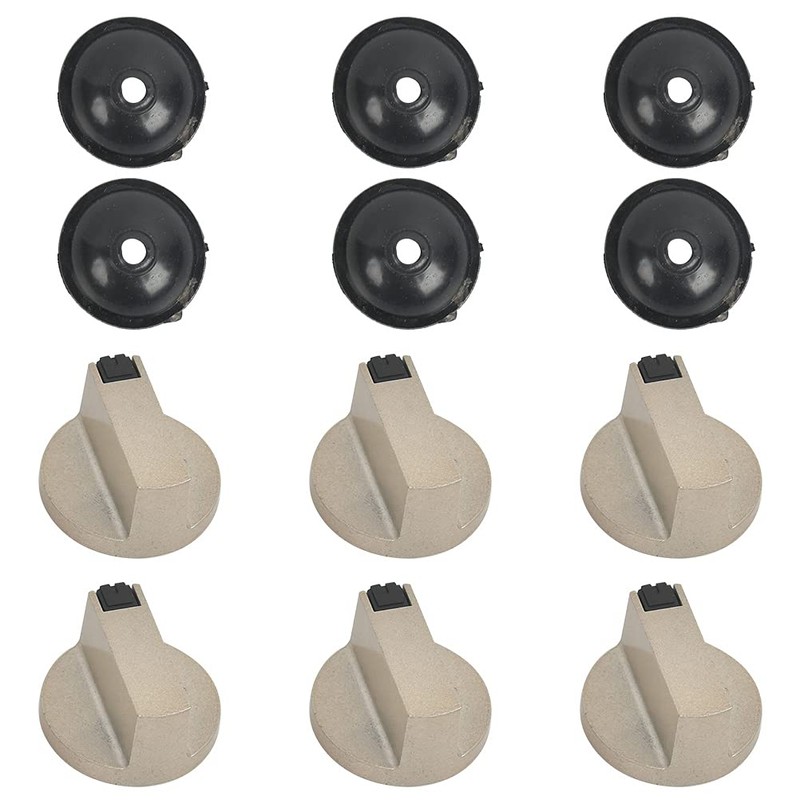 FOCCTS 6 x Gas Hob Knobs with 6 Gaskets, Stove Knobs & Switches for Ovens & Cookers Universal Replacement Accessories for Various Ovens, Cookers (8mm)