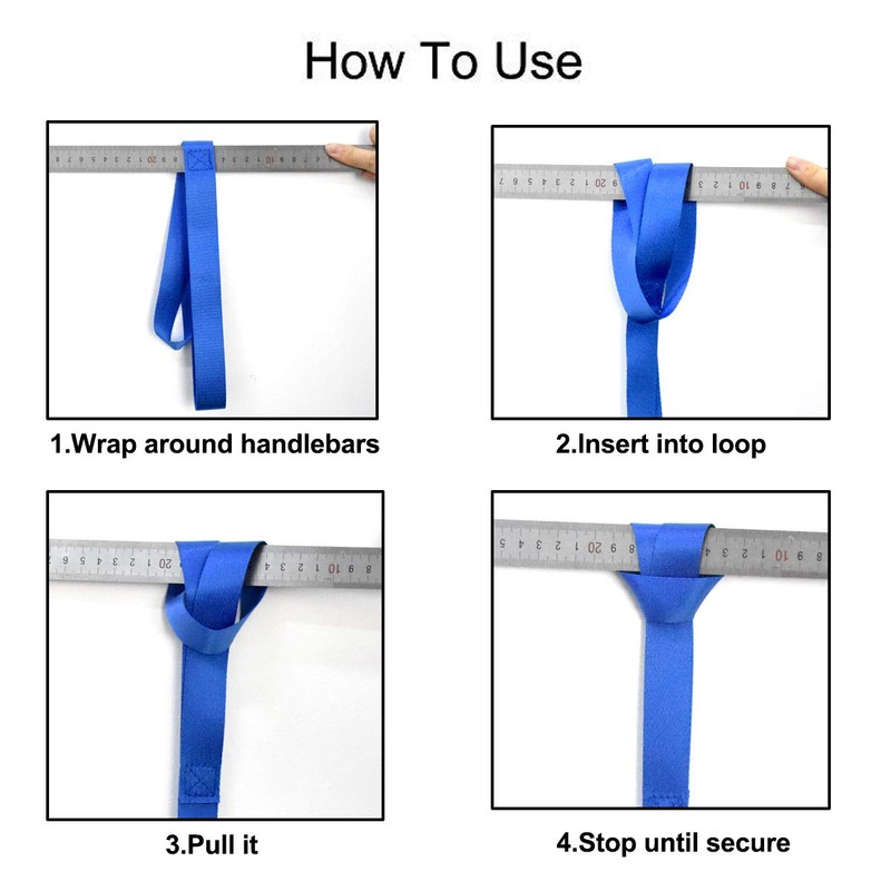 - Easy to use: Simply wrap the lashing loop around the handlebar or tube, pass the front soft loop through the rear soft loop, pull through until the soft tie sits firmly and attach the lashing hook to the remaining loop.