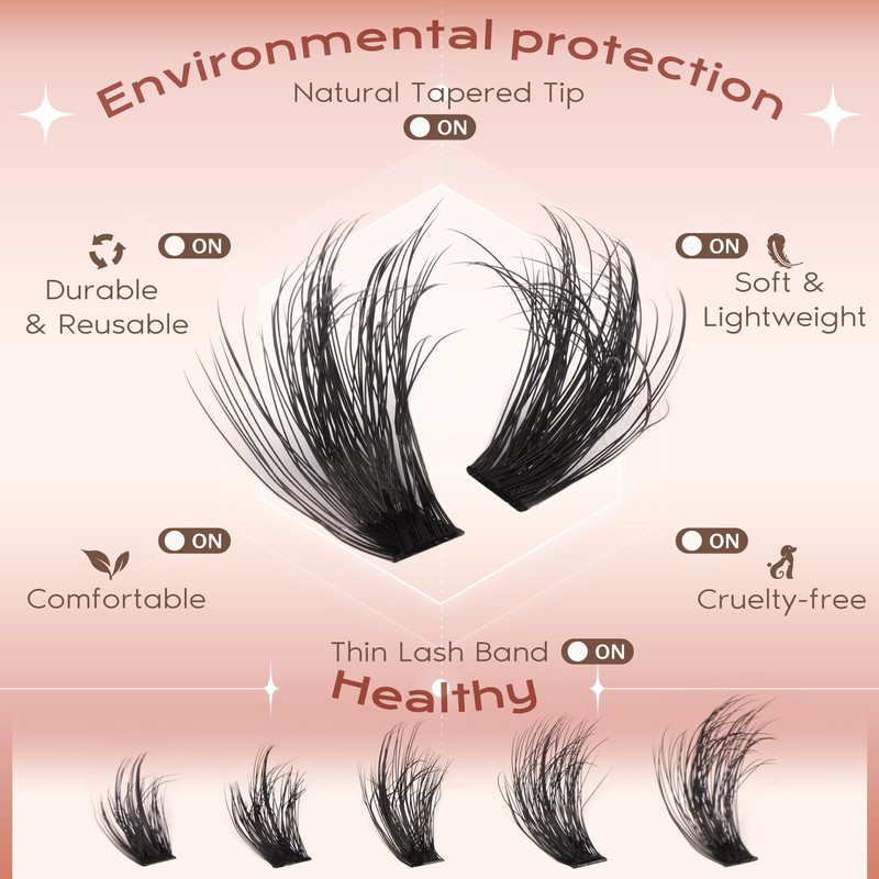 - DIY Lash Clusters for Beginners: The product revolutionizes the eyelash extension process by enabling users to achieve salon-quality results at home. With an easy-to-follow, 1 minute application process the clusters facilitate a stunning transformation for beauty enthusiasts of all skill levels