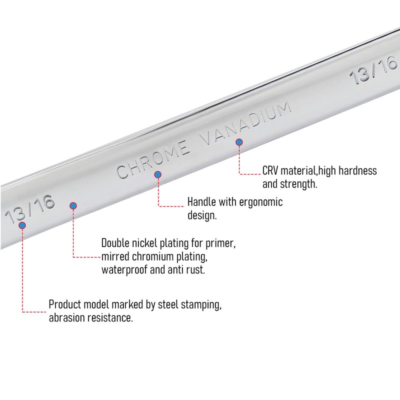 - 【Size and Packing】Both ends of wrench include box end ratchet head and Open head with steel stamped size mark 1/4", 0.32“(8.1mm) thick of the box head sectionPackage include 1 piece.