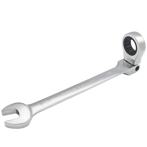FOCMKEAS 1/4 Inch Flex-Head Ratcheting Combination Wrench SAE 72 Teeth 12 Point Ratchet Box Ended and Open End Spanner Tools, Flexible Head Gear Wrench, Heat-Treated CR-V