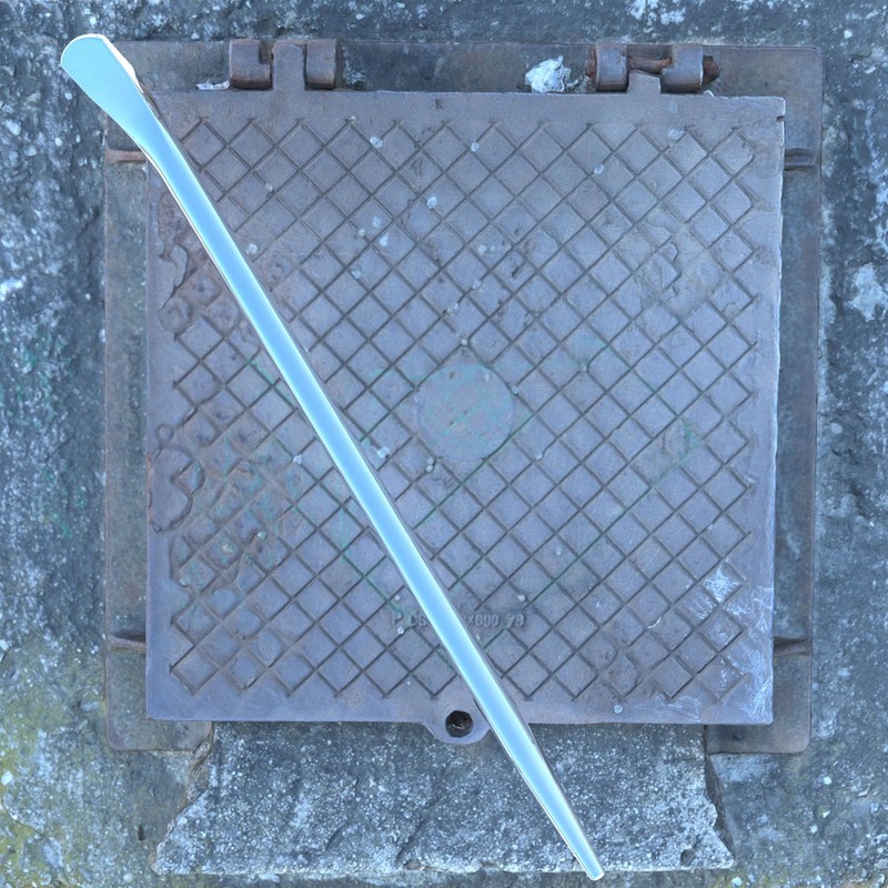The bar features two working ends - one is the aligning end while the other is a prying end. This bar is also used to lever and position the objects into place.
