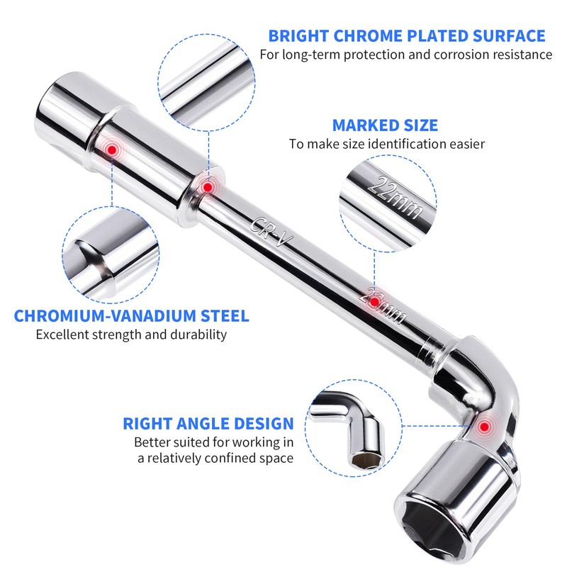 - Application: The Double-Head Elbow hex wrench is designed specifically for 22mm hexagonal bolts and is suitable for automotive machinery maintenance, industrial repair, pipeline repair, household furniture repair, etc.