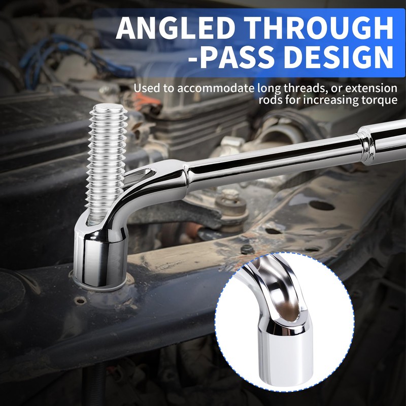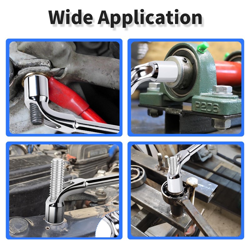 - Ergonomic Design:90° L-Shape Bend & Dual-Socket Heads 229mm/9.02in long arm maximizes leverage; 6-point milling mouth increases grip surface by 40% to prevent slipping in blind spots