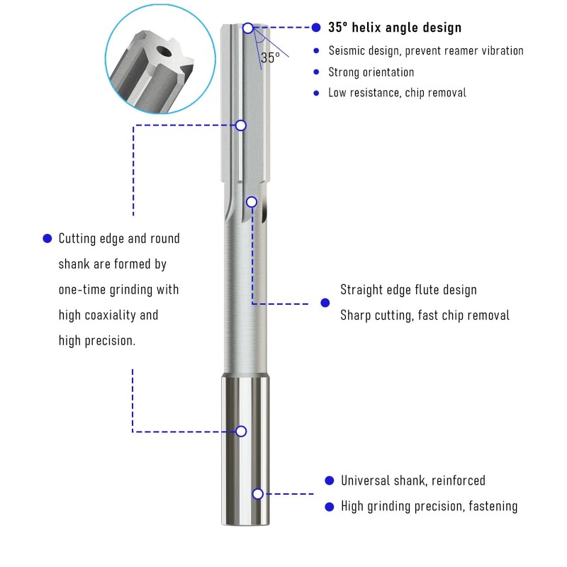 【APPLICATION】Designed for accurate reaming in most materials, using all types of equipment including screw machines, turret lathes, drill presses and machining centers