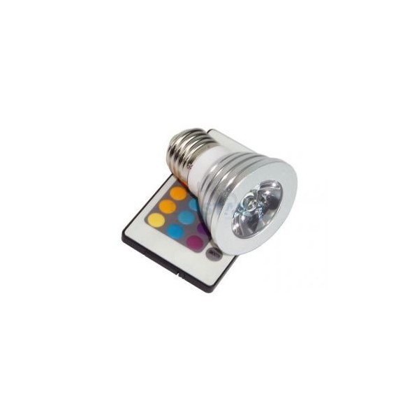 Foco Led Rgb 16 Colores 3w Base E27 Control Remoto