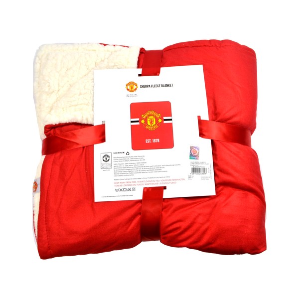 FOCO Man Utd Core Stripe Sherpa Plush Blanket