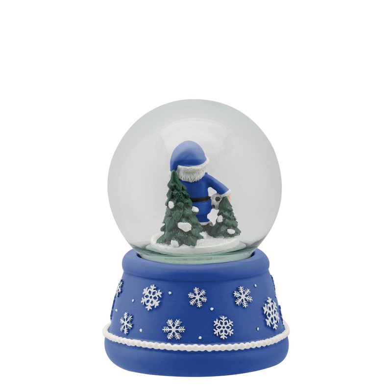 - Gnome wearing Father Christmas suit and holding football displayed inside snow globe
