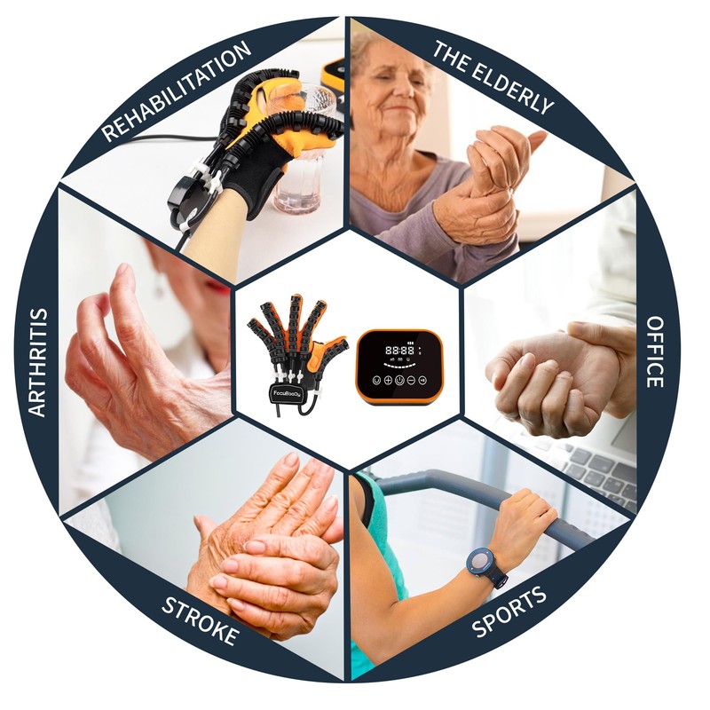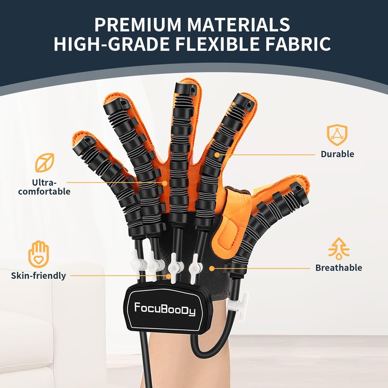 - FocuBoody Rehabilitation Robot Gloves: Designed with an eye-catching orange color, these gloves are made of high-quality, flexible fabric. The comfortable and breathable material ensures a pleasant experience during hand rehabilitation sessions.
