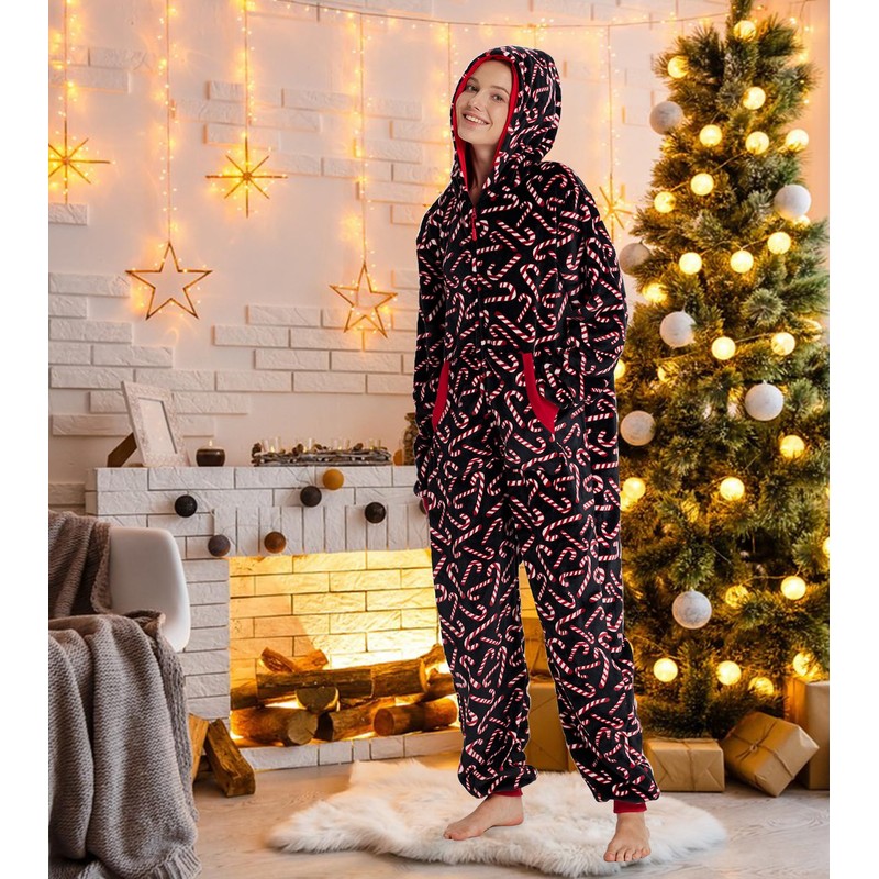 - 🎄Funny Christmas pajamas design:Loose and comfortable Christmas onesie has a design element of red Christmas cane candy pattern with full Christmas style, creating a special family Christmas atmosphere. The large hood allows the head to feel all-around warmth. Zipper closure makes it easy to put on and take off.Two kangaroo pockets are wide to warm your hands and hold your cell phone at the same time, very convenient.