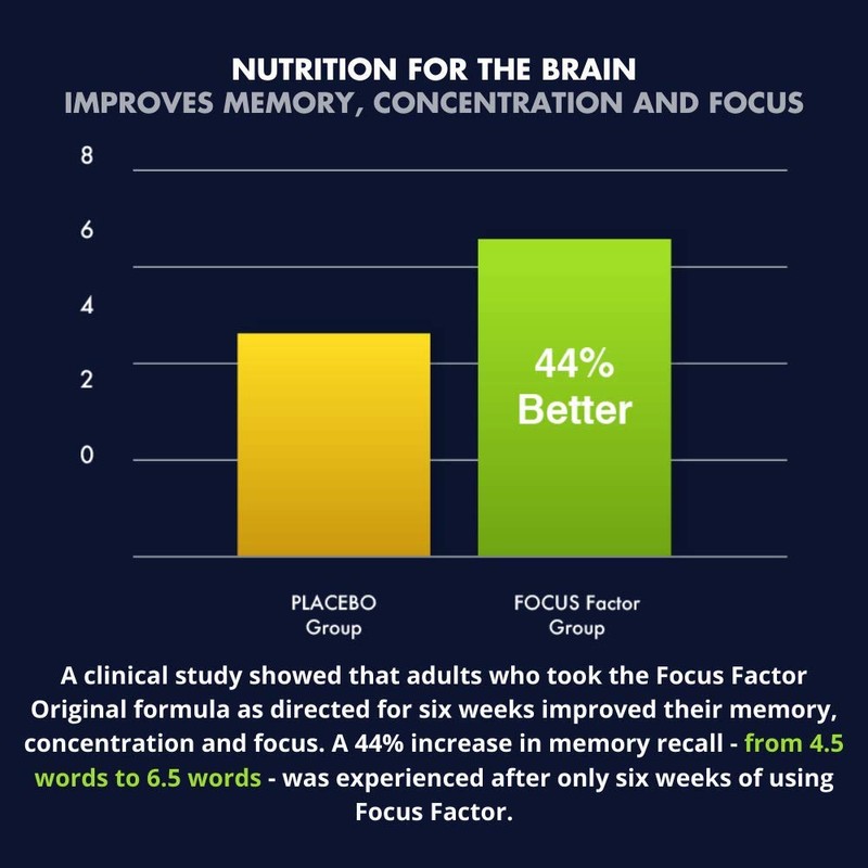 - FIND YOUR FOCUS: A clinical study showed that adults who took the original Focus Factor as directed for six weeks improved their memory, concentration and focus.