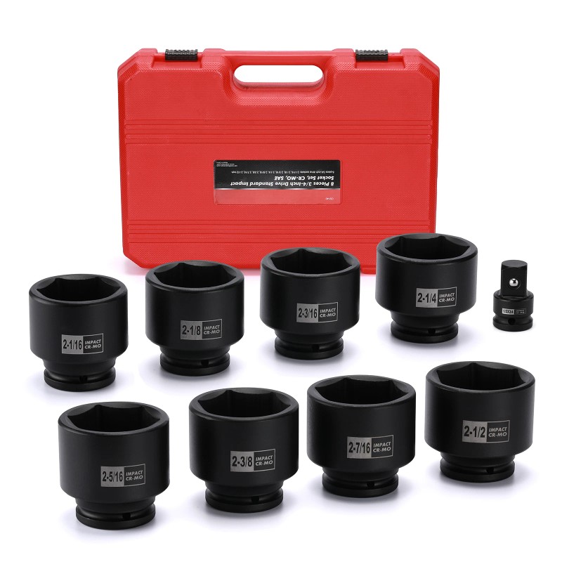 Focus Tool 9PCS 3/4" Drive Spindle Axle Nut Impact Socket Set 1/2" to 3/4" CR-MO 6 Point