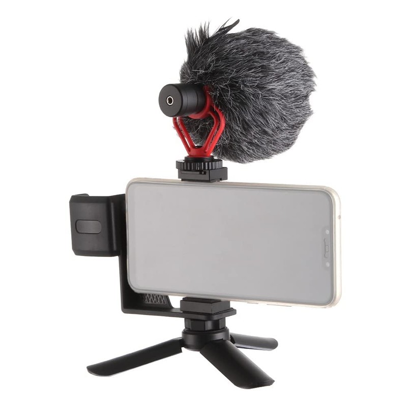 - 1. The kit comes with a universal phone holder + Microphone + Mini Tripod, specially designed for all phone shooting fanciers.