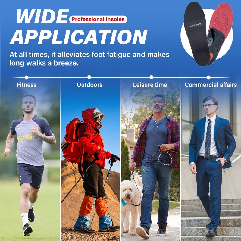FocusOnInsole Premium Anti-Fatigue Shoe Insoles - Plantar Fasciitis Arch Support Insoles for Men and Women Shoe Inserts - Orthotic Inserts - Flat Feet - Insoles for Arch Pain High Arch - Boot Insoles