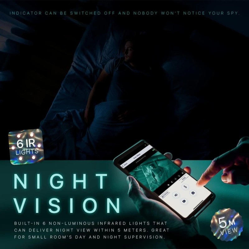 - 🎥【Night Vision Mini Camera 】This night Security Camera Indoor gives you fantastic night experience even in the dark, provides a full protection to your home, and allows you to see the whole room at night - instead of just a limited spotlight view of day or night.