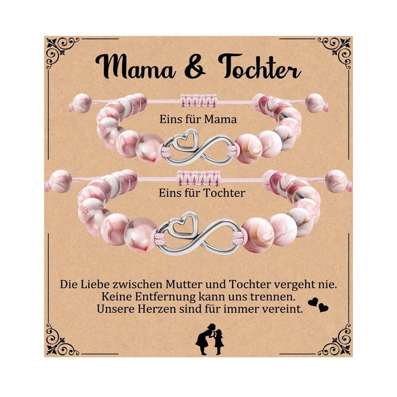 - Mommy & Me bracelet: This mother and daughter bracelet consists of two bracelets in different sizes of beads and heart sizes. A heartfelt message card included is that reads, "The love between mother and daughter never passes. No distance can separate us. Our hearts are united forever."