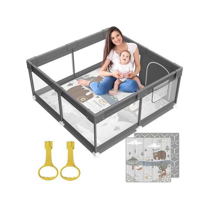 Fodoss Baby Playpen with Mat, Small Play Pen(47x47inch), for Babies and Toddlers, Pen Apartment, Yard Baby, Fence Area Playyard Activity Center (Dark Gray)