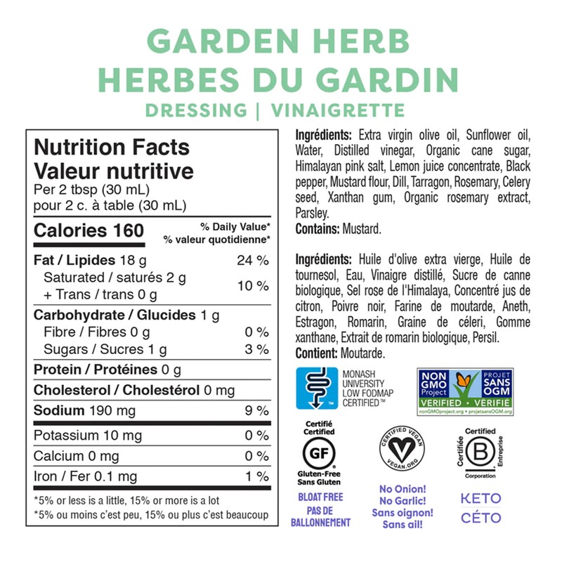 Introducing Garden Herb Dressing. Using clean, high-quality ingredients like extra virgin olive oil and Himalayan pink salt, we make salad dressings that are both delicious and worry-free.