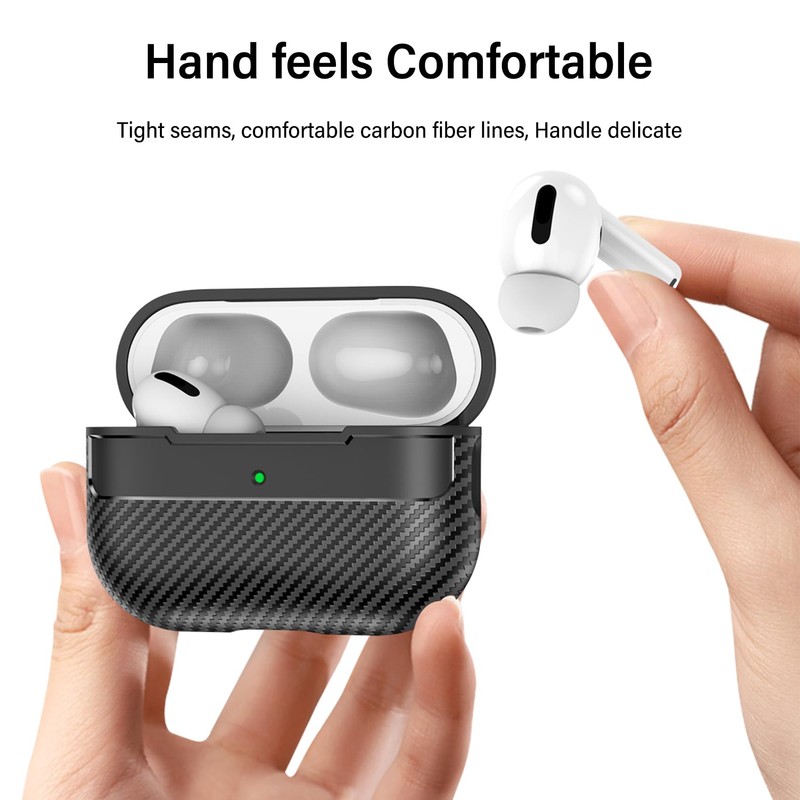 - CARBON FIBER TEXTURE SHELL: Crafted with carbon fiber texture, this case provides a sleek, durable surface that resists fingerprints and water, maintaining the pristine look of your for AirPods Pro 2 at all times. Its premium finish enhances both the tactile feel and visual appeal