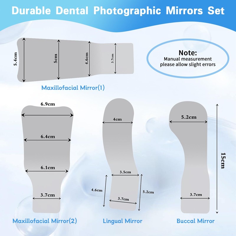 - Durable Dental Photographic Mirrors Set: This set's high-quality rhodium-plated glass mirrors and sturdy plastic handle are designed for durability, providing reliable performance for dental professionals.